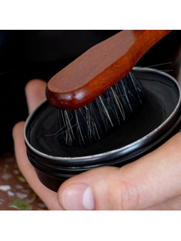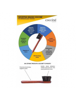 Szczotka do czyszczenia skór i nakładania past lub kremów na ich powierzchnię. Dzięki zastosowaniu końskiego włosia, działa skutecznie i delikatnie, by nie uszkodzić powierzchni materiału. Ma ergonomiczny kształt - bardzo dobrze trzyma się ją w ręce. Wygładzone krawędzie zapewniają wysoki komfort użytkowania. Szczotka zabezpieczona jest lakierobejcą, dzięki czemu zabrudzenia np. z pasty łatwo usunąć.