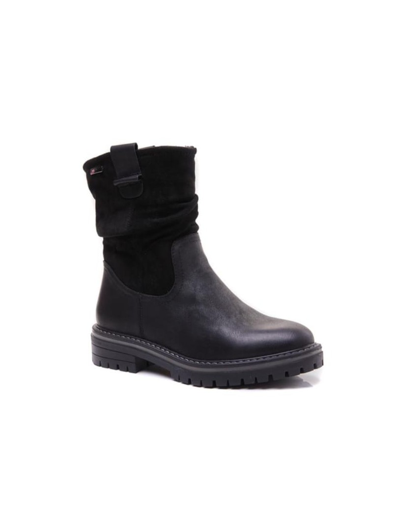 Klasyczne czarne botki damskie z ekologicznej skóry, lekko ocieplone na grubszej podeszwie marki Sixht Sense