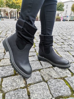 Klasyczne czarne botki damskie na grubszej podeszwie to idealny wybór na sezon jesienno - zimowy.