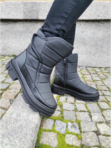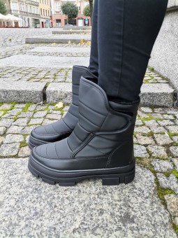 Czarne botki damskie śniegowce wodoodporne na grubej podeszwie marki Progress GAM820