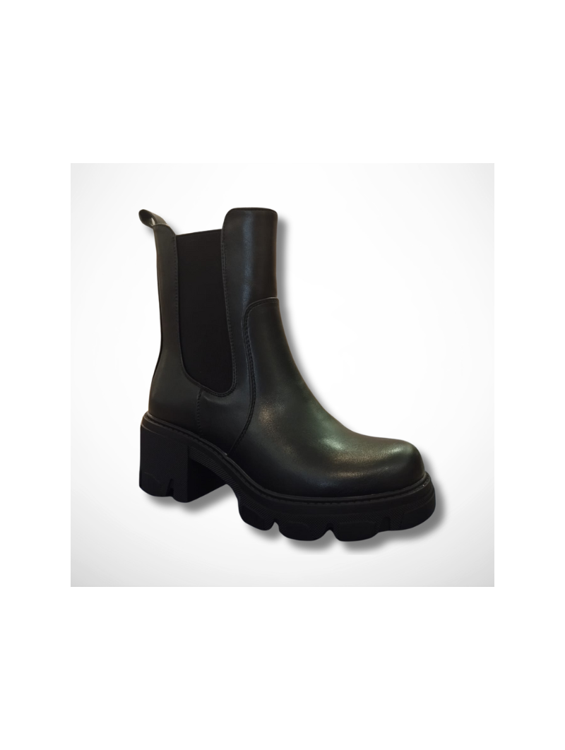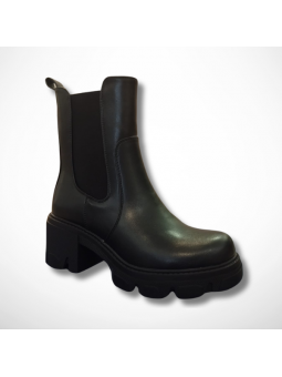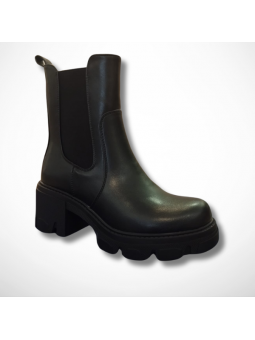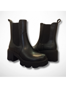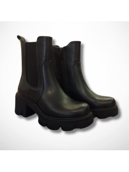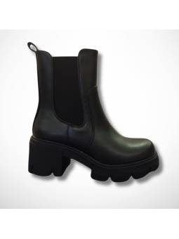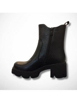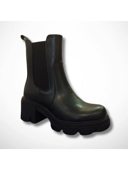 Czarne botki damskie z eko skóry z gumą z boku cholewki na platformie, oraz szerokim obcasie Sixth Sens JW168