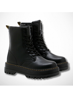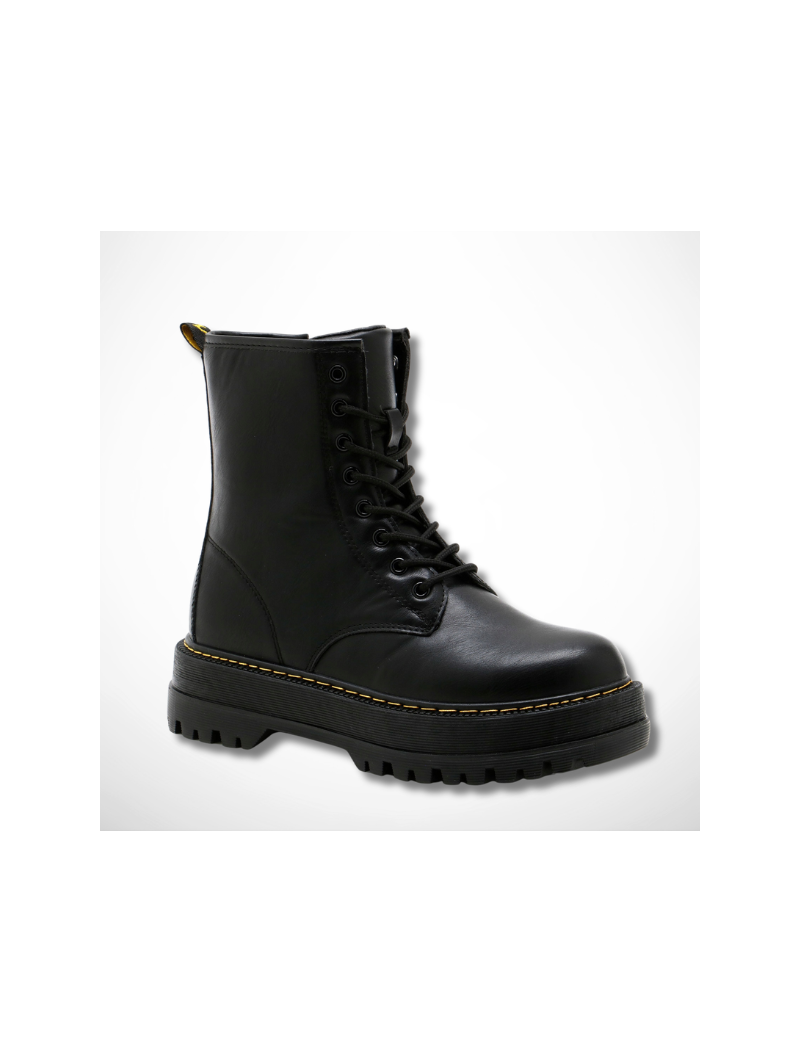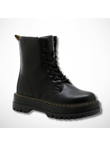Stylowe czarne botki damskie glany z eko skóry na grubej podeszwie Jezzi 24BT26-7403