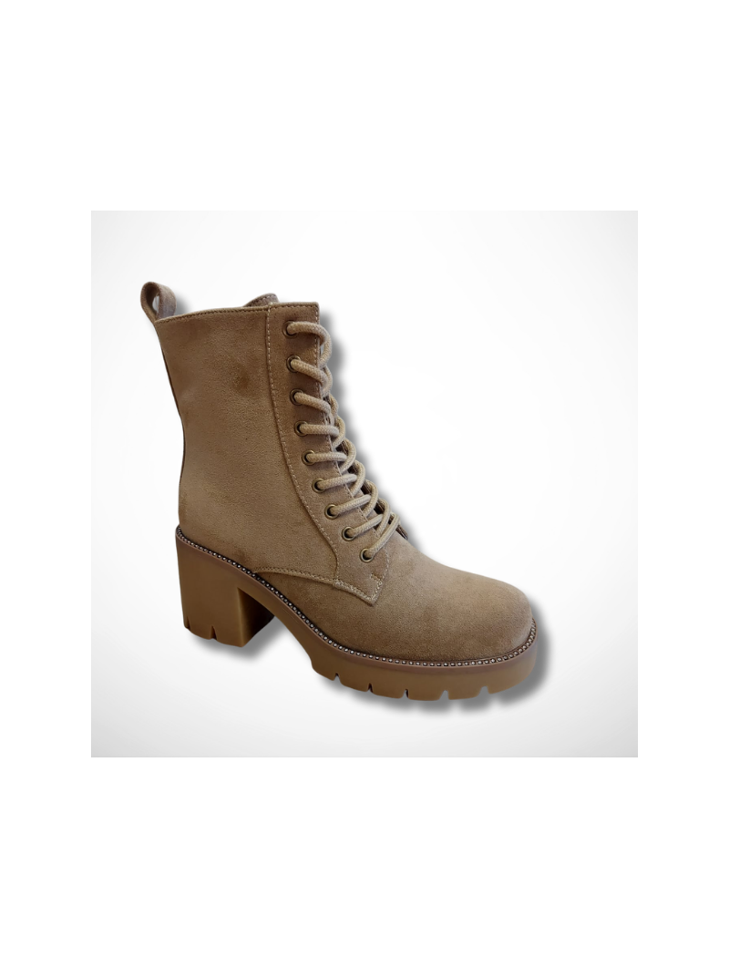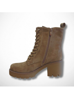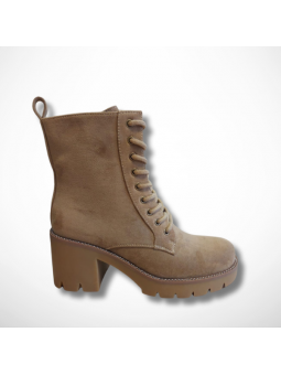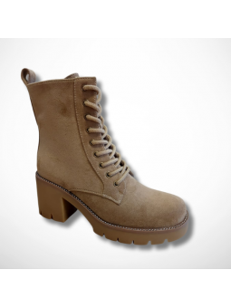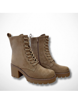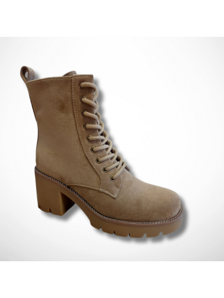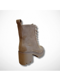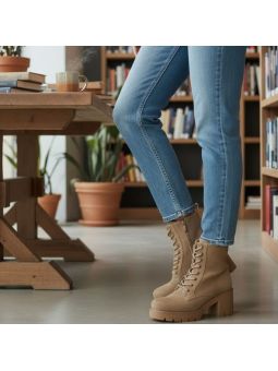 Wyjątkowe botki damskie beżowe z eko zamszu na platformie i stabilnym, szerokim obcasie Goodin HF316