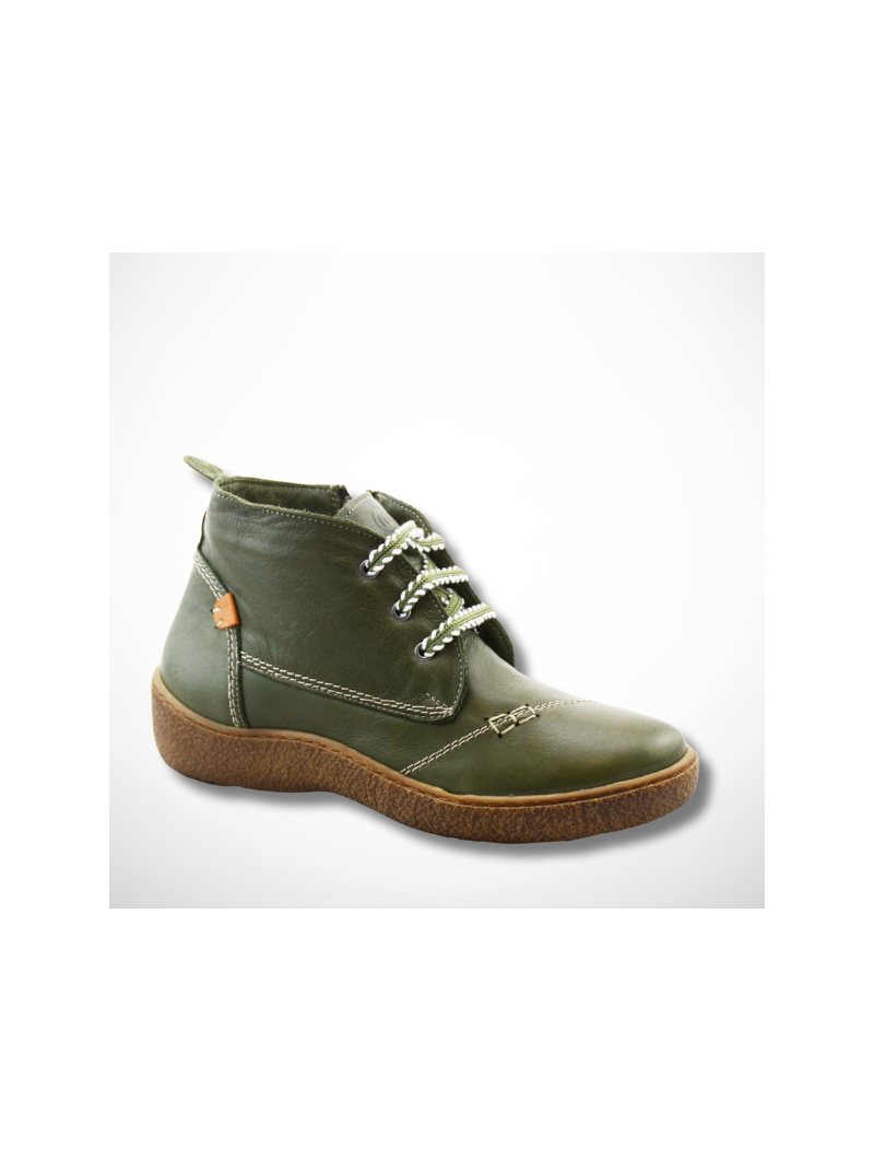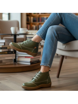 Zielone botki damskie zdrowotne z naturalnej skóry Manitu 990675-07