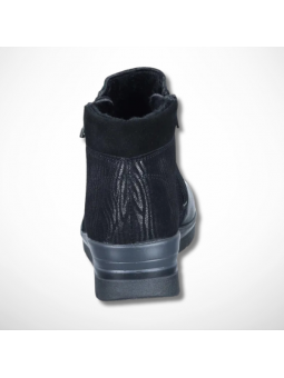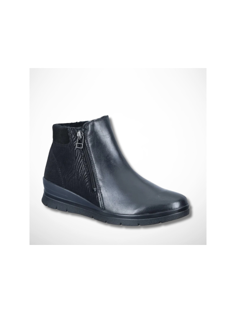Czarne botki damskie zdrowotne z miękkiej naturalnej skóry na niskim klinie tęgość H niemieckiej marki Comfortabel 9907036-01