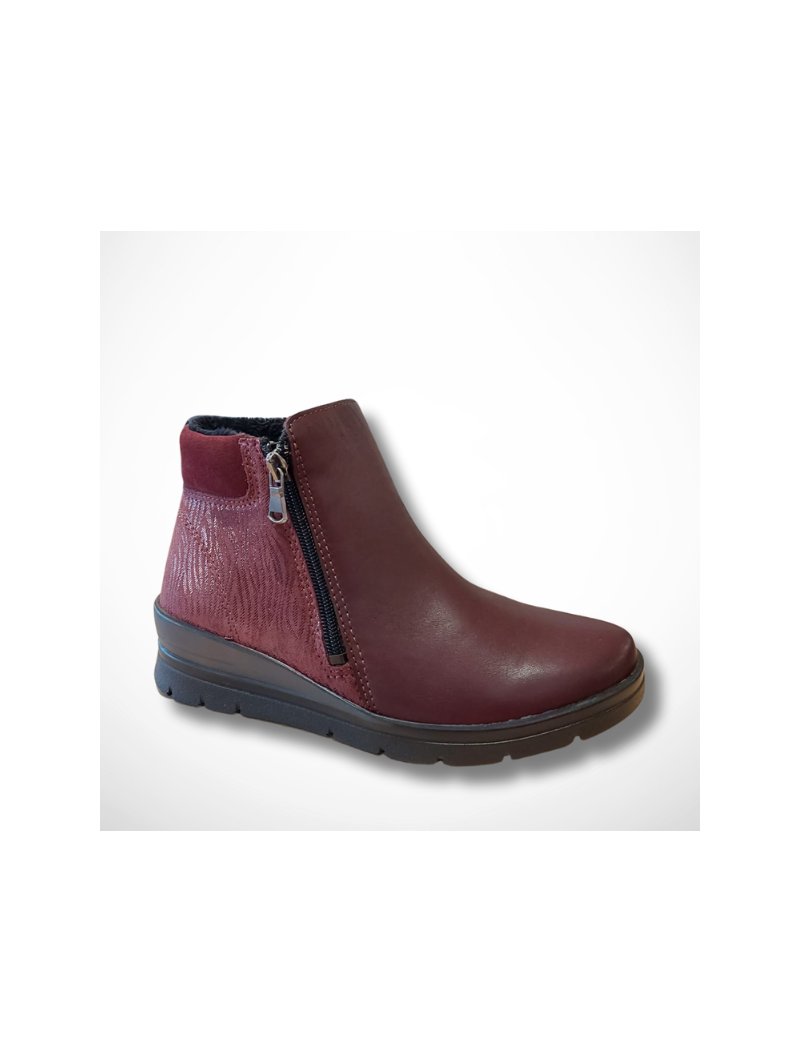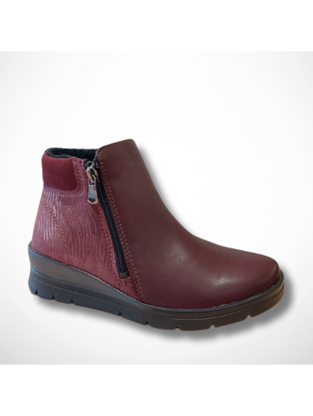 Bordowe botki damskie zdrowotne z miękkiej naturalnej skóry na niskim klinie tęgość H niemieckiej marki Comfortabel 9907036-41