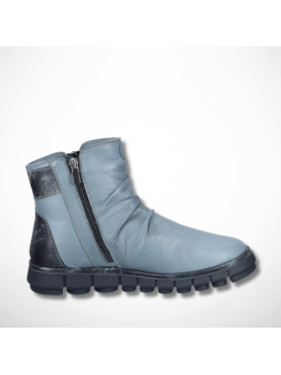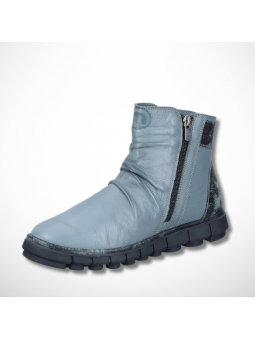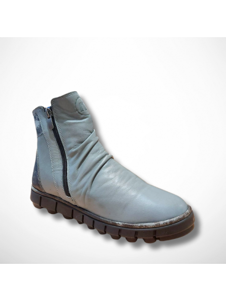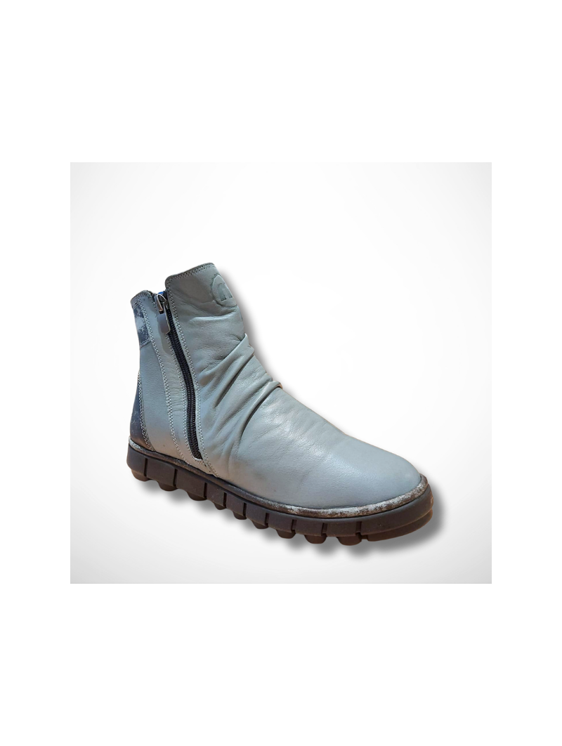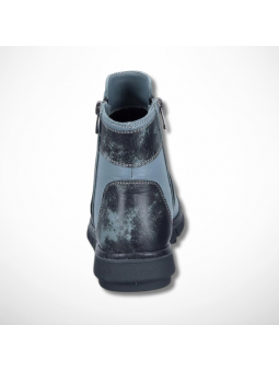 Szare botki damskie zdrowotne znanej niemieckiej firmy Manitu 990678-09 z efektownym, przecieranym akcentem na pięcie to idealne połączenie funkcjonalności i modowego pazura z wysoką jakością wykonania.
