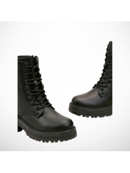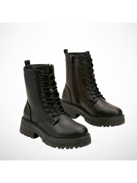 Botki damskie workery z eko skóry w czarnym kolorze na grubszej podeszwie 2308B