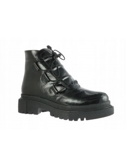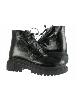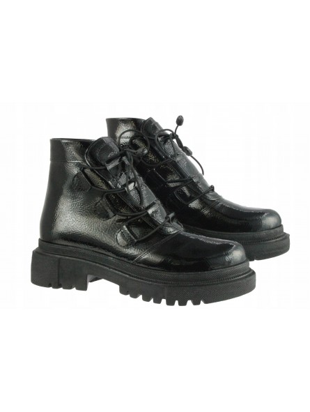 Czarne damskie lakierowane botki - workery sznurowane na grubej podeszwie znanej polskiej firmy Sokolski WHZ21-713