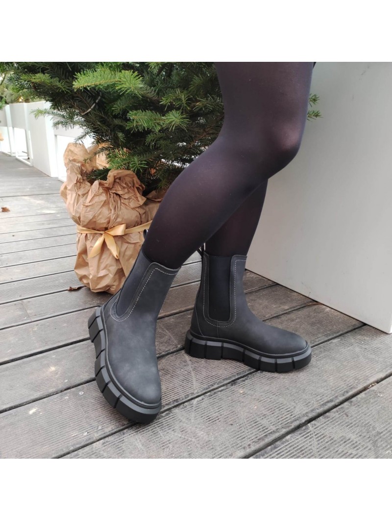 Czarne botki damskie workery z gumami po bokach na platformie Szewczyk F71571
