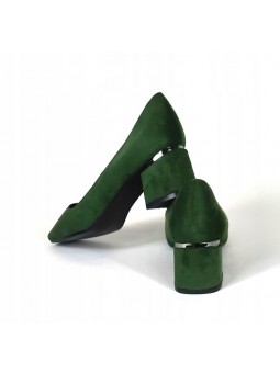 Zielone czółenka damskie na wygodnym obcasie , model 23-2248 znanej firmy Vinceza ,zostały wykonane z wysokogatunkowego zamszu ekologicznego gwarantującego doskonałą jakość, wygodę i dopasowanie do stopy.