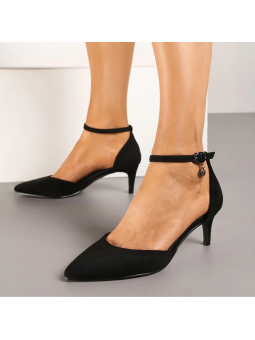 Eleganckie czarne czółenka na szpilce z imitacji zamszu i skórzaną wkładką Vices 2322C