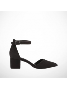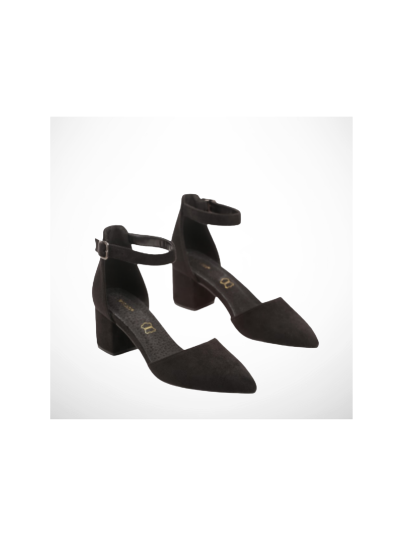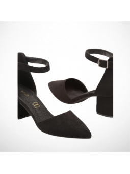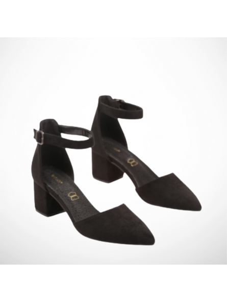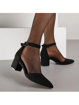 Czółenka zostały wykonane z wysokiej jakości imitacji zamszu. Komfort użytkowania podnosi miękka wkładka wyłożona skórą naturalną. Niski obcas typu klocek o wysokości 6 cm to idealne rozwiązanie dla kobiet, które cenią wygodę i stabilność. Doskonałe zapięcie na sprzączkę przy kostce zwiększa ich stabilność i pewność ruchów, niezależnie od okazji. Czółenka charakteryzują się szpiczastym noskiem co dodaje całości szyku i elegancji.