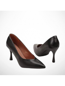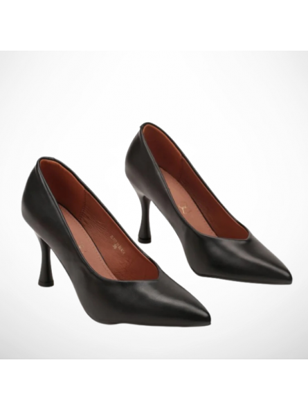 Czarne czółenka na szpilce z eko skóry i wkładką skórzaną Vices 2329B
