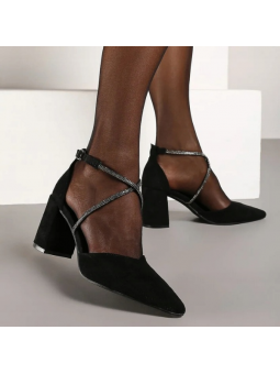 Te stylowe czółenka mają cholewkę wykonaną z wysokiej jakości materiału, który nadaje im luksusowy wygląd i trwałość. Wkładka wewnętrzna, wykończona skórą naturalną, zapewnia komfort użytkowania, a dzięki swojej miękkości umożliwia noszenie butów przez długi czas bez uczucia zmęczenia. Nosek w szpic dodaje subtelności i podkreśla kobiecy charakter obuwia, czyniąc je idealnym wyborem na wyjątkowe okazje. Charakterystyczny, stabilny obcas dodaje pewności kroku. Subtelne cyrkonie wzdłuż pasków będą mienić się przy każdym kroku, dodając całości wyrafinowanego blasku.