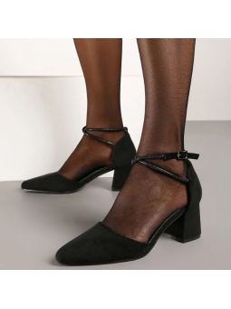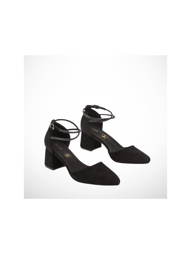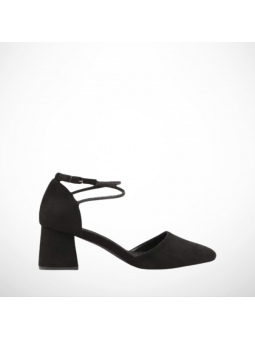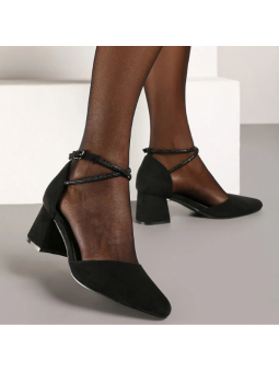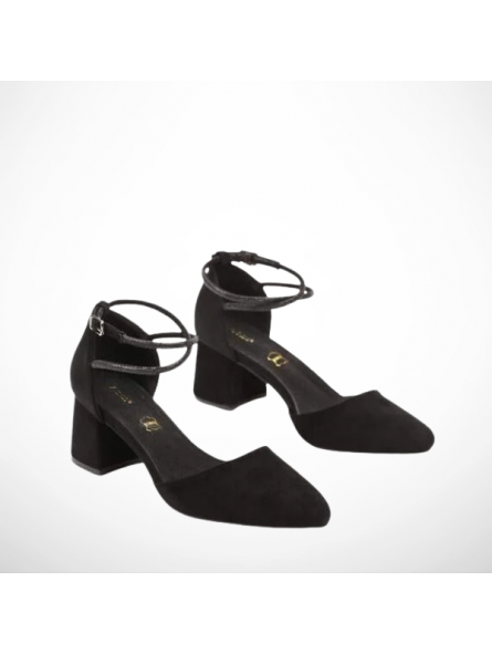 Wyjątkowe czółenka damskie w czarnym kolorze ze skóry ekologicznej zamszowej oraz skórzaną wkładką na stabilnym obcasie 2354B