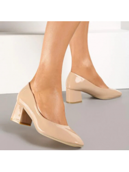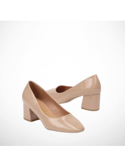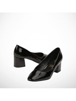 Klasyczne czółenka damskie ze skóry ekologicznej lakierowanej i skórzaną wkładką na stabilnym obcasie 2351B