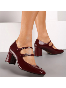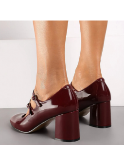 Damskie czółenka lakierowane w bordowym kolorze na stabilnym obcasie 2350B