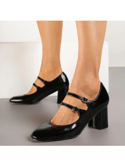Te stylowe czółenka mają cholewkę wykonaną z wysokiej jakości skóry ekologicznej lakierowanej w beżowym kolorze, który nadaje im luksusowy wygląd i trwałość. Wkładka wewnętrzna, wykończona eko skórą, zapewnia komfort użytkowania, a dzięki swojej miękkości umożliwia noszenie butów przez długi czas bez uczucia zmęczenia. Szeroki, stabilny obcas zapewnia doskonałe oparcie i równomierne rozłożenie ciężaru ciała. Model posiada dwa delikatne paski z subtelnymi, metalowymi klamerkami, co dodaje im szykownego charakteru.