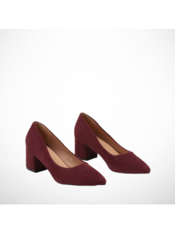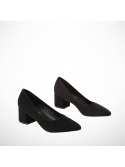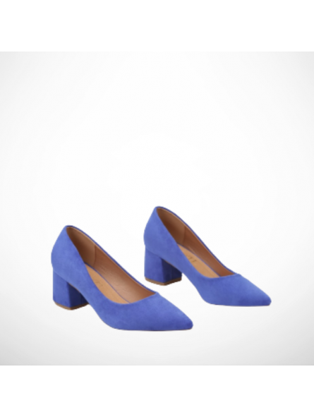 Klasyczne czółenka damskie ze skóry ekologicznej zamszowej i skórzaną wkładką na stabilnym obcasie 2355B