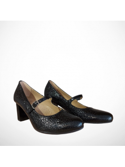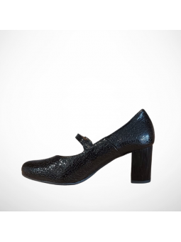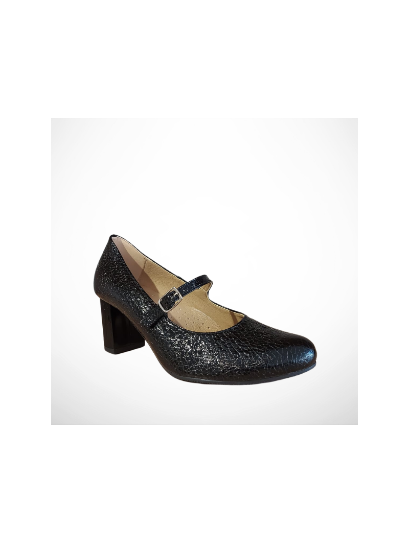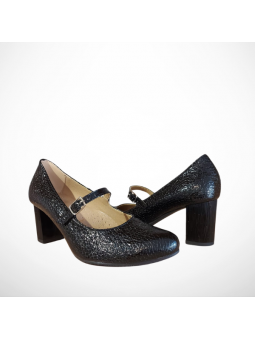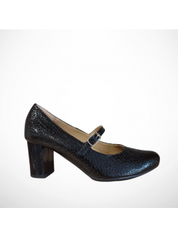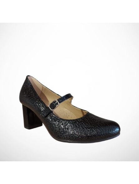 Buty posiadają wygodny, stabilny obcas o średniej wysokości, dzięki czemu doskonale sprawdzą się zarówno na co dzień, jak i podczas bardziej eleganckich okazji. Pasek zapinany na klamrę w stylu Mary Jane zapewnia lepsze dopasowanie do stopy oraz dodaje całości kobiecego uroku.