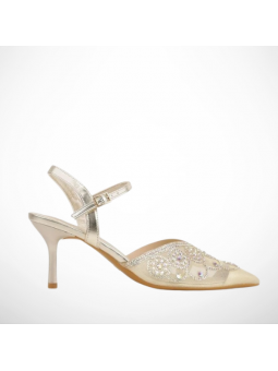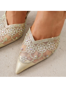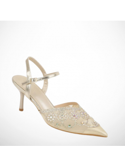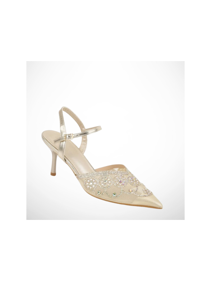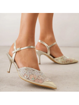 Złote, Siateczkowe czółenka na szpilce to model, który daje efekt WOW w każdej stylizacji. Delikatnie zdobiona cyrkoniami cholewka, lekko transparentna forma i dopracowane detale tworzą vibe prosto z trendów dodając całości luksusowego charakteru.