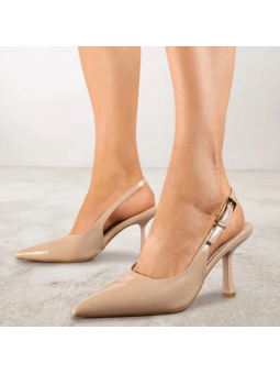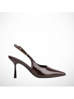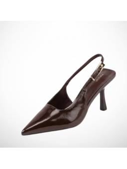 Model w klasycznym, brązowym odcieniu zachwyca minimalistycznym designem i delikatnymi detalami w postaci lakierowanej cholewki. Smukły obcas pięknie wysmukla sylwetkę, a stabilna konstrukcja zapewnia komfort noszenia przez cały dzień. Regulowany pasek z ozdobną klamrą pozwala idealnie dopasować but do stopy.