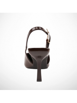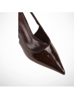 Klasyczne, brązowe czółenka lakierowane na szpilce z eko skóry z wolną piętą 2378B