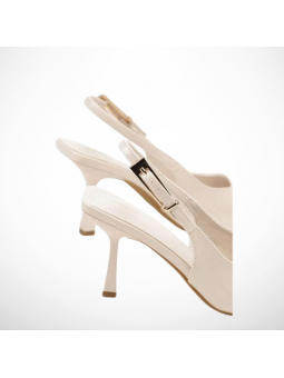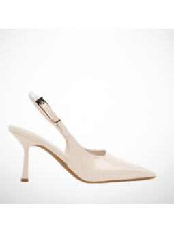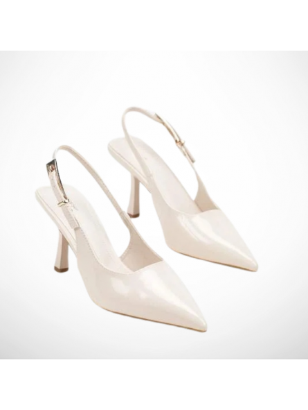 Model w klasycznym, beżowym/ecru odcieniu zachwyca minimalistycznym designem i delikatnymi detalami w postaci lakierowanej cholewki. Smukły obcas pięknie wysmukla sylwetkę, a stabilna konstrukcja zapewnia komfort noszenia przez cały dzień. Regulowany pasek z ozdobną klamrą pozwala idealnie dopasować but do stopy.