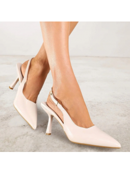Klasyczne, beżowe czółenka lakierowane na szpilce z eko skóry z wolną piętą 2378B