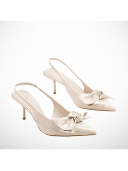 Wykonane zostały z ekologicznej skóry lakierowanej z miękką wkładką co zwiększa komfort użytkowania. Model wyróżnia się delikatnym wykończeniem oraz ozdobną kokardką z przodu, która dodaje całości wyjątkowego, kobiecego charakteru. Smukły obcas pięknie podkreśla sylwetkę, a regulowany pasek na pięcie zapewnia stabilność i komfort podczas chodzenia.