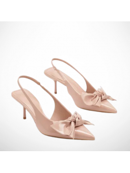 Wykonane zostały z ekologicznej skóry lakierowanej z miękką wkładką co zwiększa komfort użytkowania. Model wyróżnia się delikatnym wykończeniem oraz ozdobną kokardką z przodu, która dodaje całości wyjątkowego, kobiecego charakteru. Smukły obcas pięknie podkreśla sylwetkę, a regulowany pasek na pięcie zapewnia stabilność i komfort podczas chodzenia.