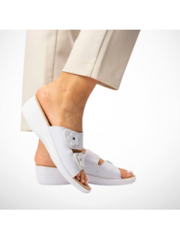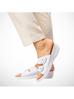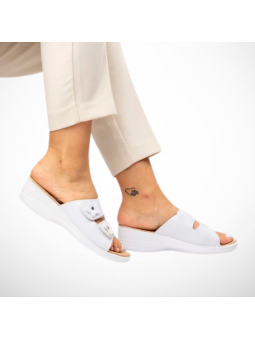Wygodne klapki damskie z ekologicznej skóry w białym kolorze na niskim klinie SD5299
