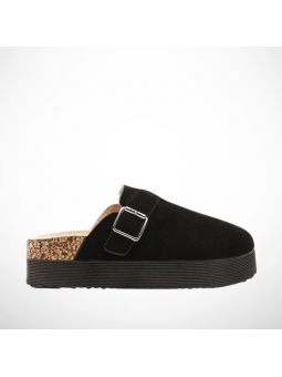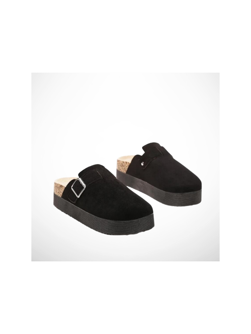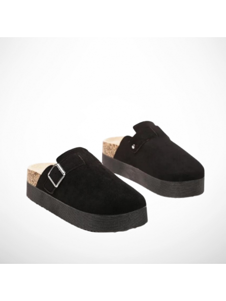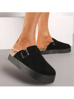 Klapki Damskie Na Platformie Czarne Zamszowe z Korkiem Eleganckie