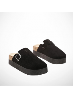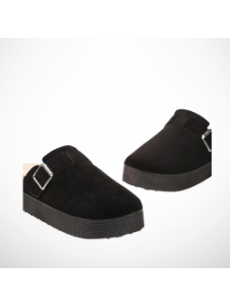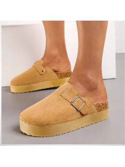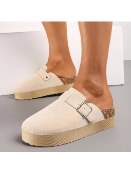 Lekkie klapki z pełnym przodem z imitacji zamszu na grubej podeszwie 4004B