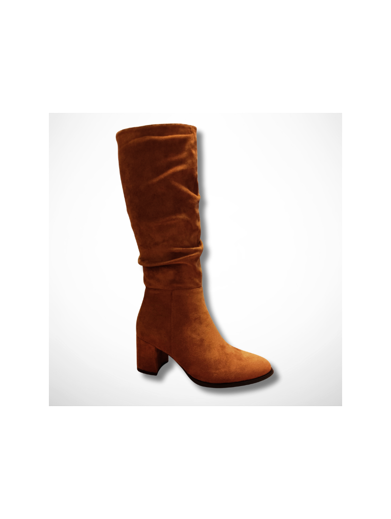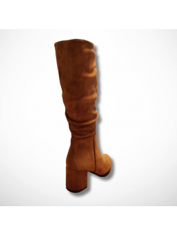 Eleganckie kozaki damskie z imitacji zamszu zapinane na zamek na stabilnym obcasie typu klocek HQ338