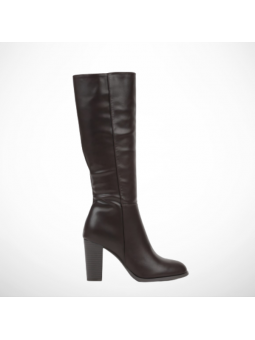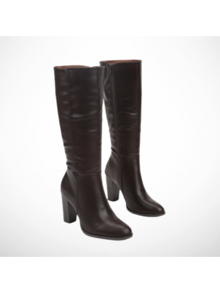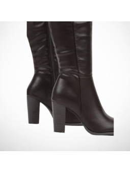 Eleganckie kozaki damskie z eko skóry na obcasie typu słupek w brązowym odcieniu Vices 2316B