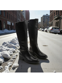 Czarne kozaki oficerki damskie z ozdobną klamrą Vices 2326B