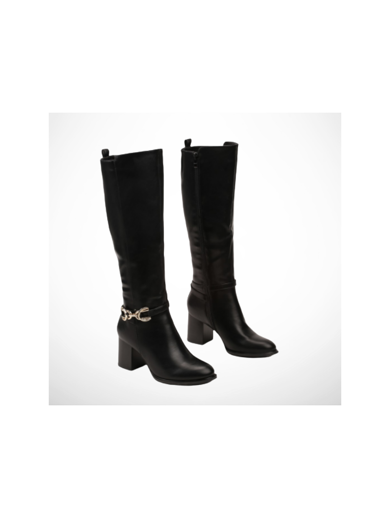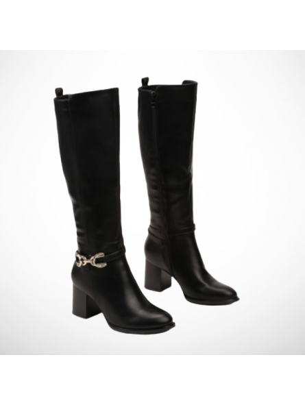 Te czarne kozaki damskie na obcasie to idealna propozycja zarówno na co dzień, jak i na wyjątkowe okazje. Minimalistyczny design z charakterystyczną ozdobną  tworzy nowoczesny look, który świetnie komponuje się zarówno z sukienkami, jak i dopasowanymi jeansami. To must-have w szafie każdej kobiety, która chce wyglądać stylowo i czuć się komfortowo w każdych warunkach.
