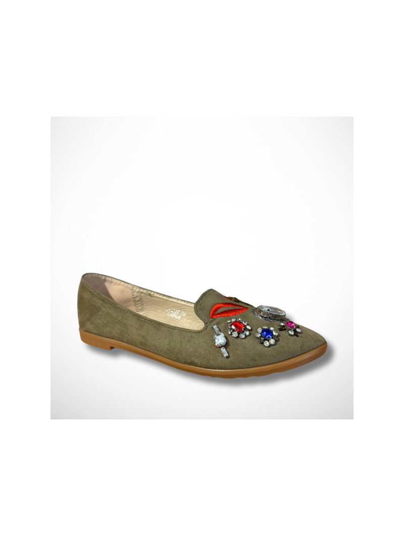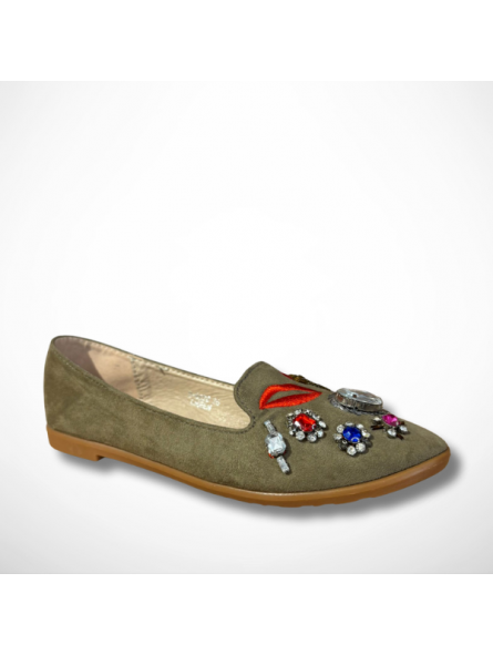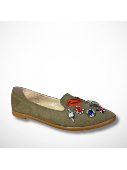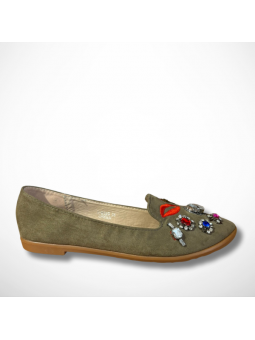 Zielone mokasyny z eko zamszu na płaskiej podeszwie D6520