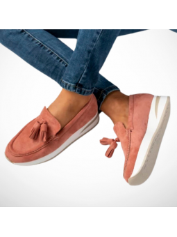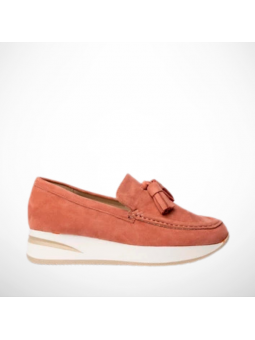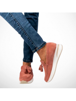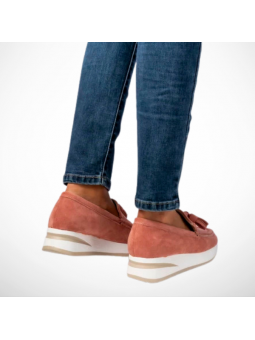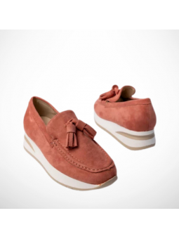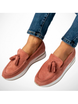 Stylowe półbuty mokasyny damskie z eko zamszu w różowym kolorze na lekkiej platformie G-55