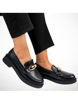 Eleganckie mokasyny damskie czarne z ekologicznej skóry z ozdobą 2301M