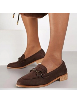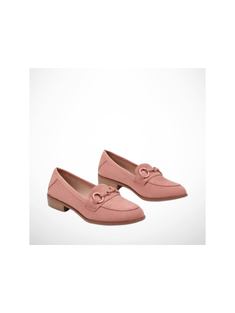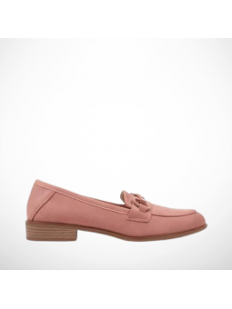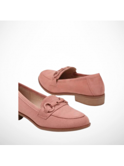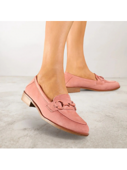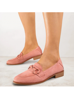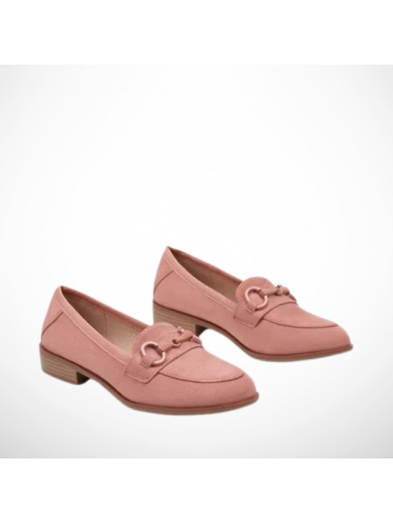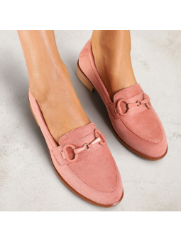 Eleganckie różowe mokasyny damskie z eko zamszu na drewnopodobnej podeszwie 2363B