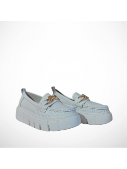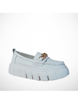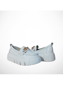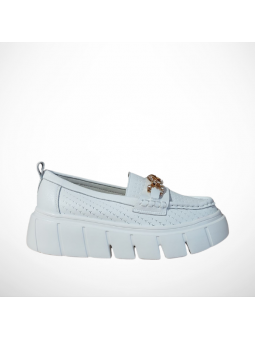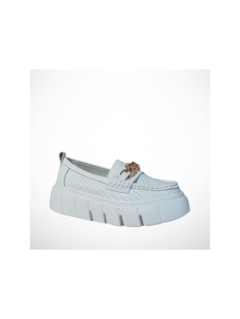Ażurowe mokasyny z naturalnej skóry i skórzaną wkładką na platformie ze złotym łańcuszkiem Goodin GDFT-127