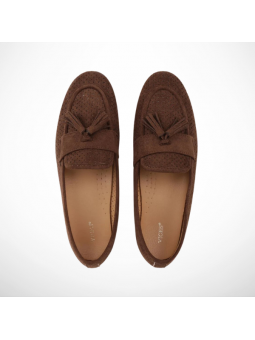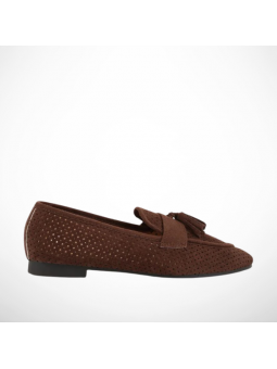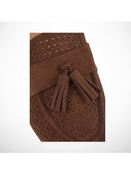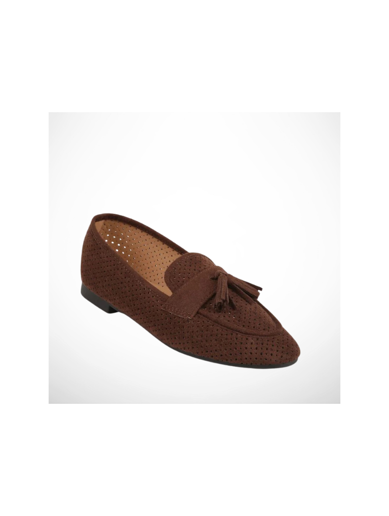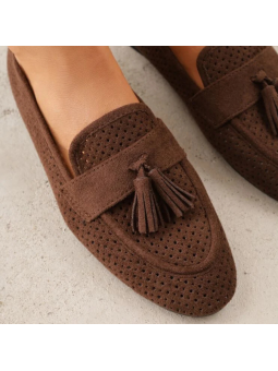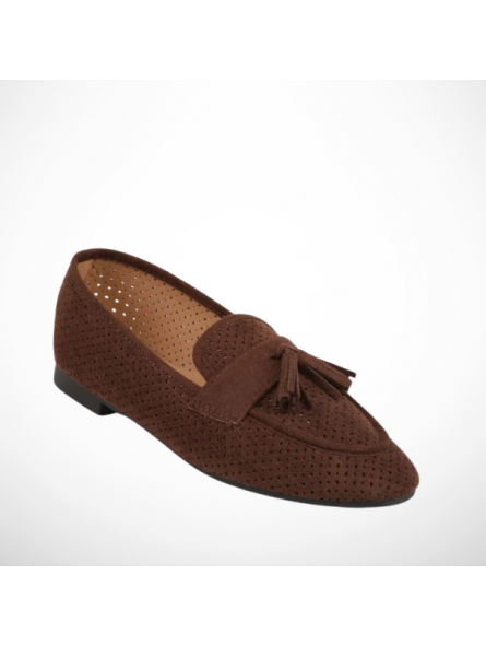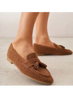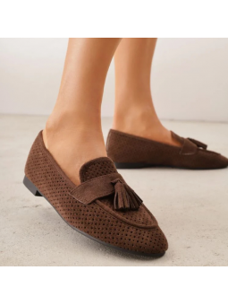 Brązowe Ażurowe Mokasyny Loaftersy Damskie Z Frędzlami Z Eko Zamszu - postaw na połączenie elegancji i niesamowitego komfortu!