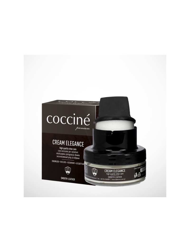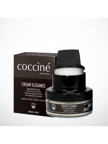 Cocciné Cream Elegance jest optymalnym wyborem dla wszystkich, którzy poszukują wydajnego i skutecznego kremu pielęgnującego obuwie. Krem zabezpieczając obuwie wydłuża ich życie, co ogranicza konieczność ich wymiany na nowe. Zawiera woski, które po wypolerowaniu nadają piękny połysk i chronią skórę.