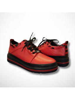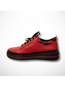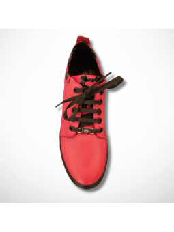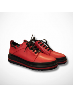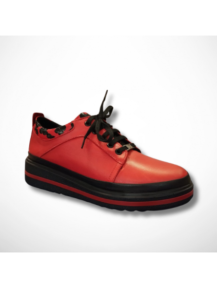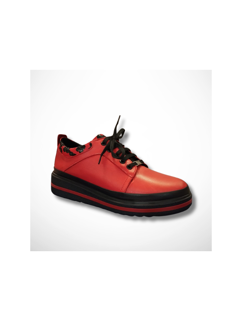 Stylowe czerwone skórzane półbuty damskie sznurowane niemieckiej firmy na grubszej podeszwie Manitu 850042-04