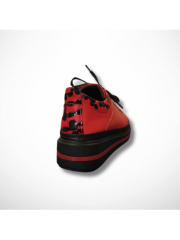 Czerwona cholewka oraz delikatne ozdoby w postaci czarnych plam nadają butom charakterystycznego wyglądu , podkreślając styl każdej kobiety.