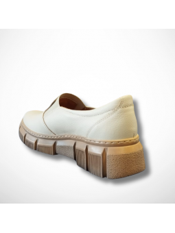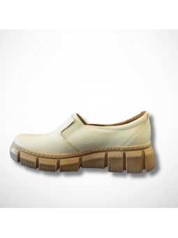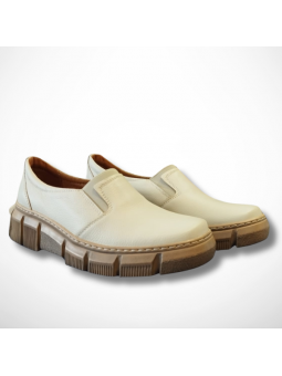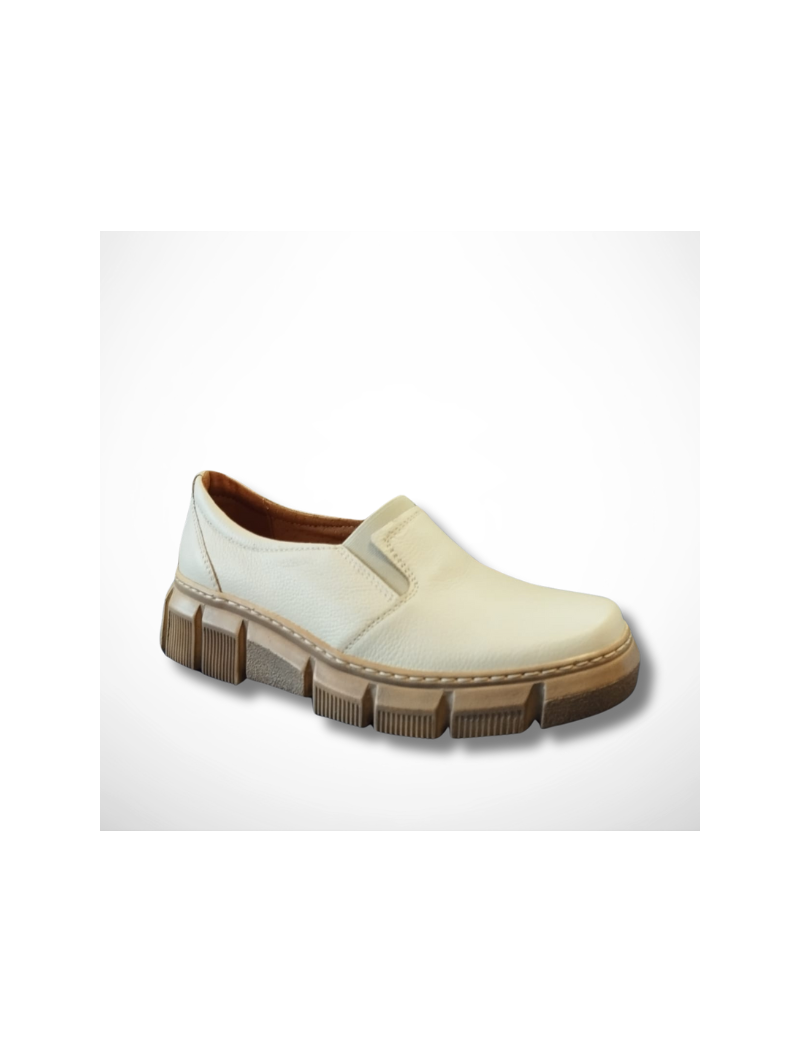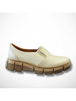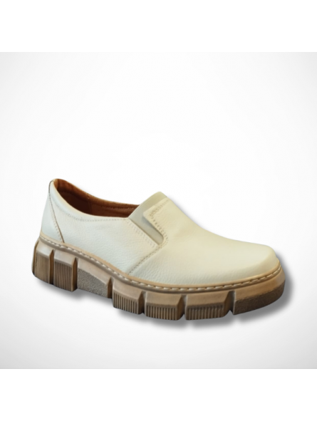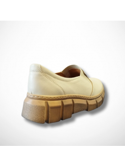 Komfortowe półbuty damskie beżowe z naturalnej skóry licowej na stabilnej grubej podeszwie marki Wielbut 031