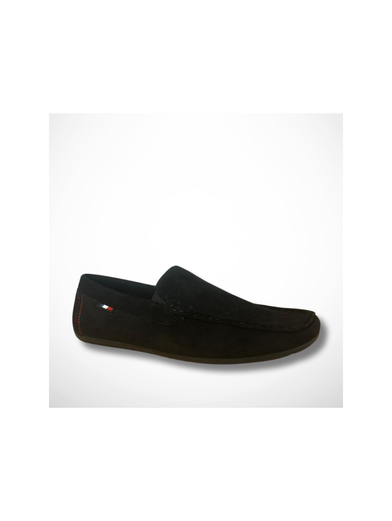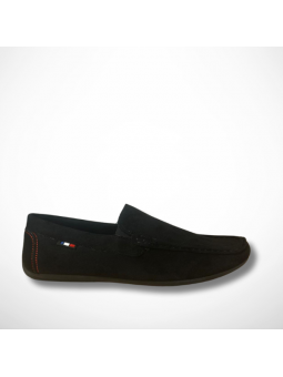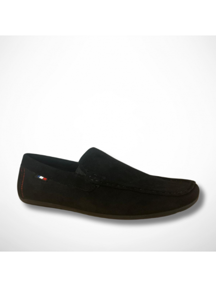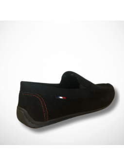 Wygodne półbuty mokasyny męskie z eko zamszu z gumką w czarnym kolorze E506-1